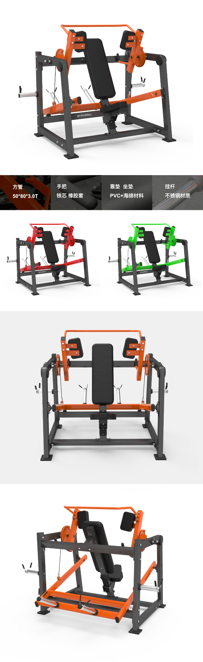 BFT-E21 BFT-E21 臂下壓背肌訓練器 尺寸:1930x1700x1500mm 淨重:158kgs 主管:方管50*80*3.0T 手把:φ25 鐵芯+TPV橡膠套 靠墊/坐墊:PVC+海綿材料 掛杆:不鏽鋼材質 最大承重:300kg 獲取報價