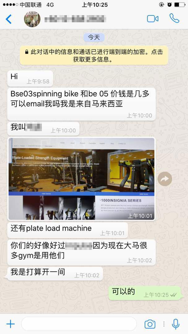 這位來自馬來西亞的客戶在WhatsApp上說馬來西亞很多健身房都是用同行某一家供應商的器材,他後麵也表示那個同行的器材沒有草莓视频APP在线下载的質量好。圖中拍照的網站是客戶訪問草莓视频APP在线下载英文網站www.bftfitness.com/plate-loaded/頁麵