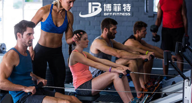 劃船機:劃船機的動作有點模擬水上賽艇,可以測出運動者在過程中消耗的力量和運動頻率,所以又稱測功儀。使用方法是坐在劃船機上,雙腳固定在腳踏板上,雙手握住把手,然後用背部和手臂的力量將把手拉向胸部,同時用腿部的力量將身體向後推,再緩慢還原到起始位置。劃船機每劃一次,身體的上肢、下肢、腰腹部、背部等都會隨著完成一次完整的收縮與伸展,屬於一個全身參與的有氧訓練器械,尤其對腰腹部和上臂部脂肪較多的人群比較適用。其實劃船機的使用樂趣和效果還是在於過程中不斷的挑戰,對速度頻次的挑戰會感受到不同力度的刺激,每組次數的提升就可以驗證你的進步,劃船機運用的好的話其實可以達到一些無氧訓練對核心的提升。