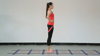動作解析:首先采取前後腳站立,收腹挺胸,雙手叉腰,然後全力向上縱跳,在空中交叉換腿,穩定落地不做停頓,再次跳起。跳躍動作對下肢爆發力是極好的訓練。