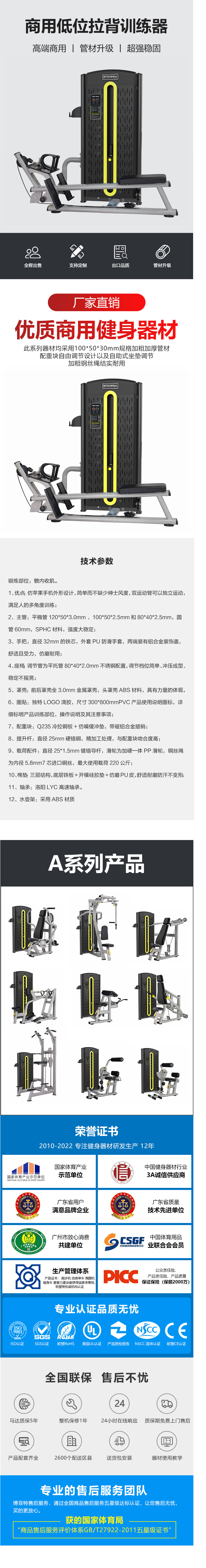 9、載荷配件:直徑25*1.5mm鍍鉻導杆,滑輪為加硬一體PP滑輪,鋼絲繩為內徑5.8mm7芯進口鋼絲,最大使用載荷220公斤;