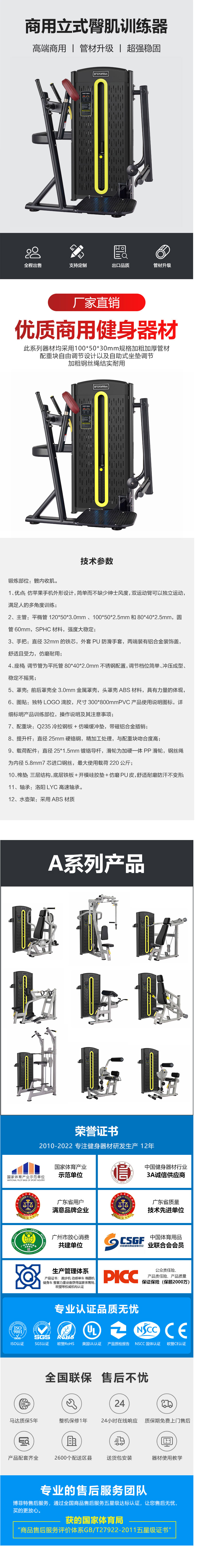 9、載荷配件:直徑25*1.5mm鍍鉻導杆,滑輪為加硬一體PP滑輪,鋼絲繩為內徑5.8mm7芯進口鋼絲,最大使用載荷220公斤;