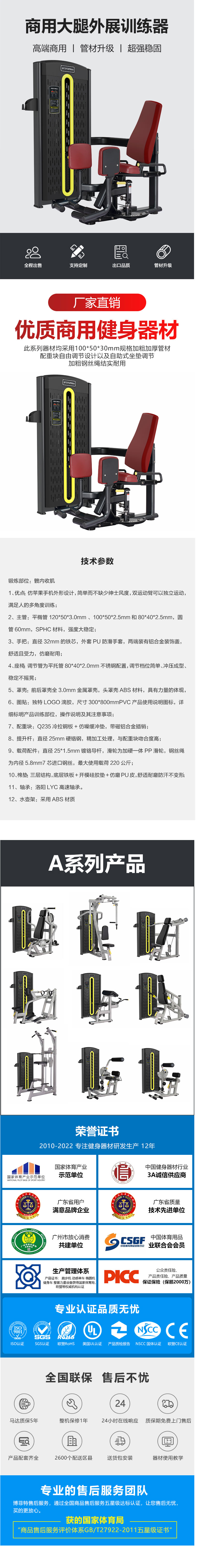 9、載荷配件:直徑25*1.5mm鍍鉻導杆,滑輪為加硬一體PP滑輪,鋼絲繩為內徑5.8mm7芯進口鋼絲,最大使用載荷220公斤;